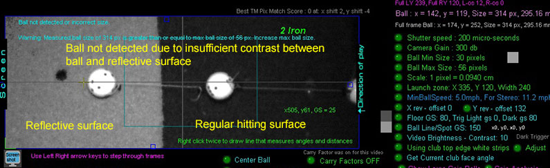 Check camera alignment as shown below using 2 balls placed directly in-line with each other