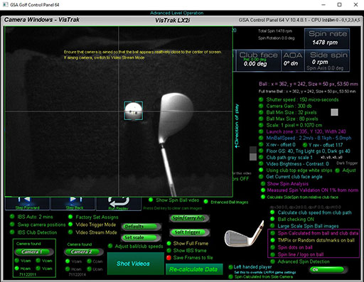 select the "Show Full Ball Frame" option and the "Video Stream Mode" option and aim the camera so that it appears close to the center of the screen