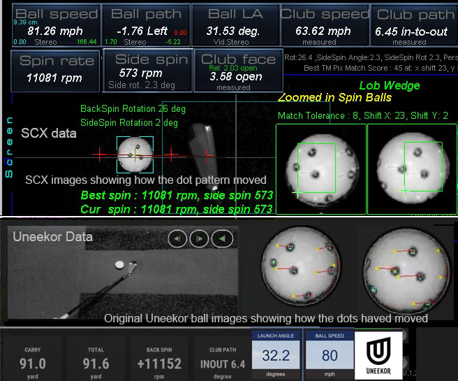 SCX vs Uneekor QED Comparison Ball spin results