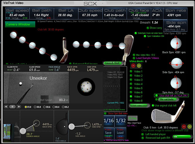 In these tests, we loaded VX shot videos into the SCX and re-ran the calculations.