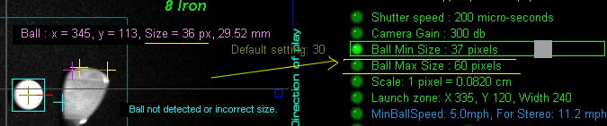Check camera alignment as shown below using 2 balls placed directly in-line with each other