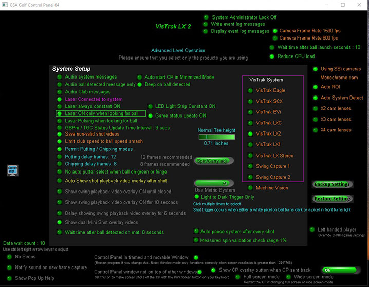 Go to the Setup panel and select Vistrak LX2 from the list of systems on the right hand side of the Setup screen