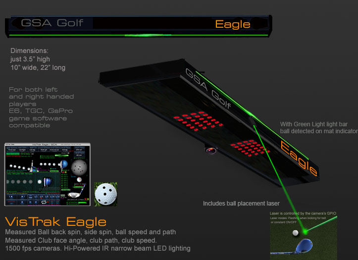 the VisTrak Eagle can also be used as a stand alone tracking system the integrates with GSpro, E6, TGC and other golf game software.