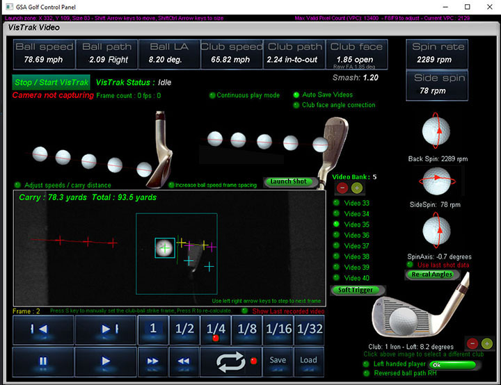 The VisTrak video files include all ball and club data calculated at the time of the shot.