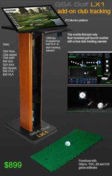 The GSA Golf LX functions with E6, GS Pro, CG3 and TGC (and more) game software packages